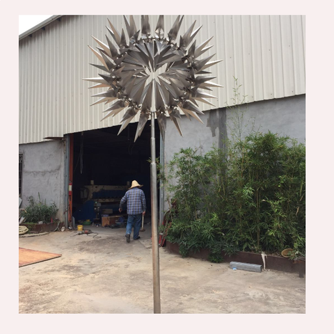 Da Giardino In Acciaio Inox Scultura. Si tratta di un cinetica vento scultura. Si inizierà a girare quando il vento soffia. Sembra davvero incredibile.